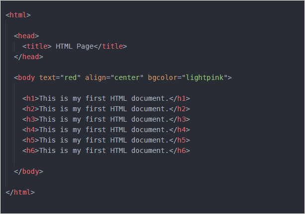 <h1></h1> – heading tag ; we have choice to select the size of heading from h1 to h6. Lets see how it is implemented-